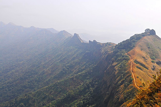 After about 1 hour of laborious walking, we reached what looked like the half-way point. The view was amazing, but the camera could not capture the majesty of the Sayadri mountains range because of all the fog.